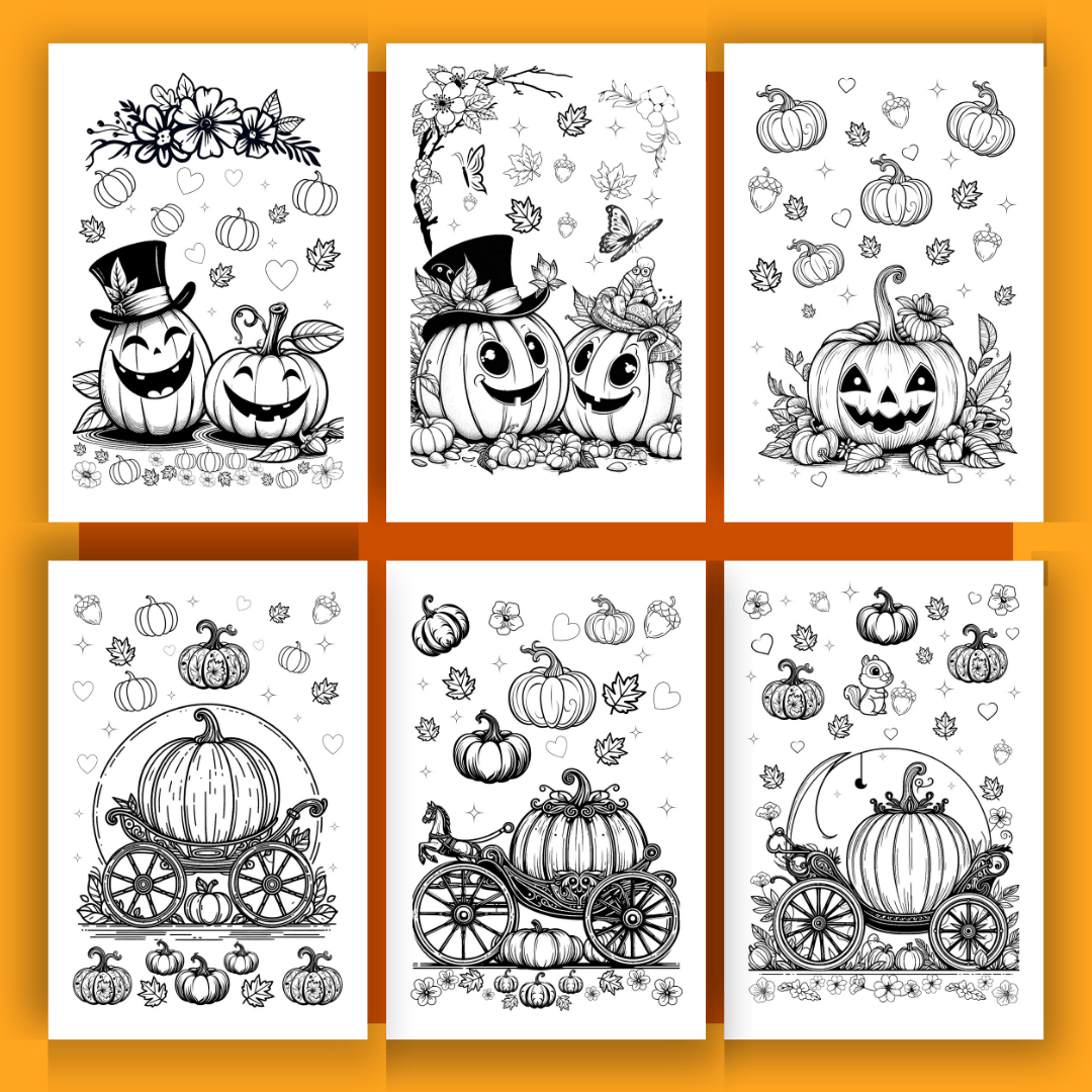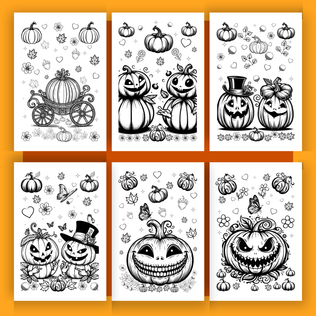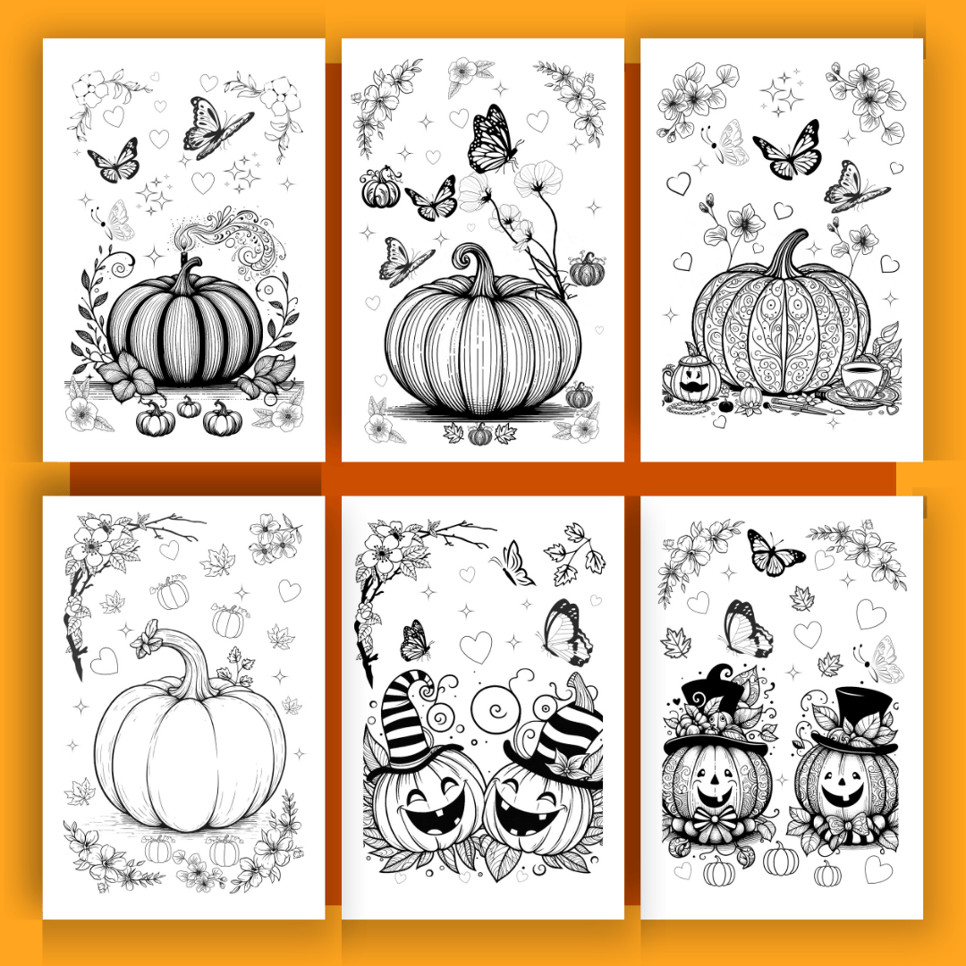 25 Pumpkin Coloring Pages - Instant Digital PDF Download, Printable Coloring Sheets for Adults