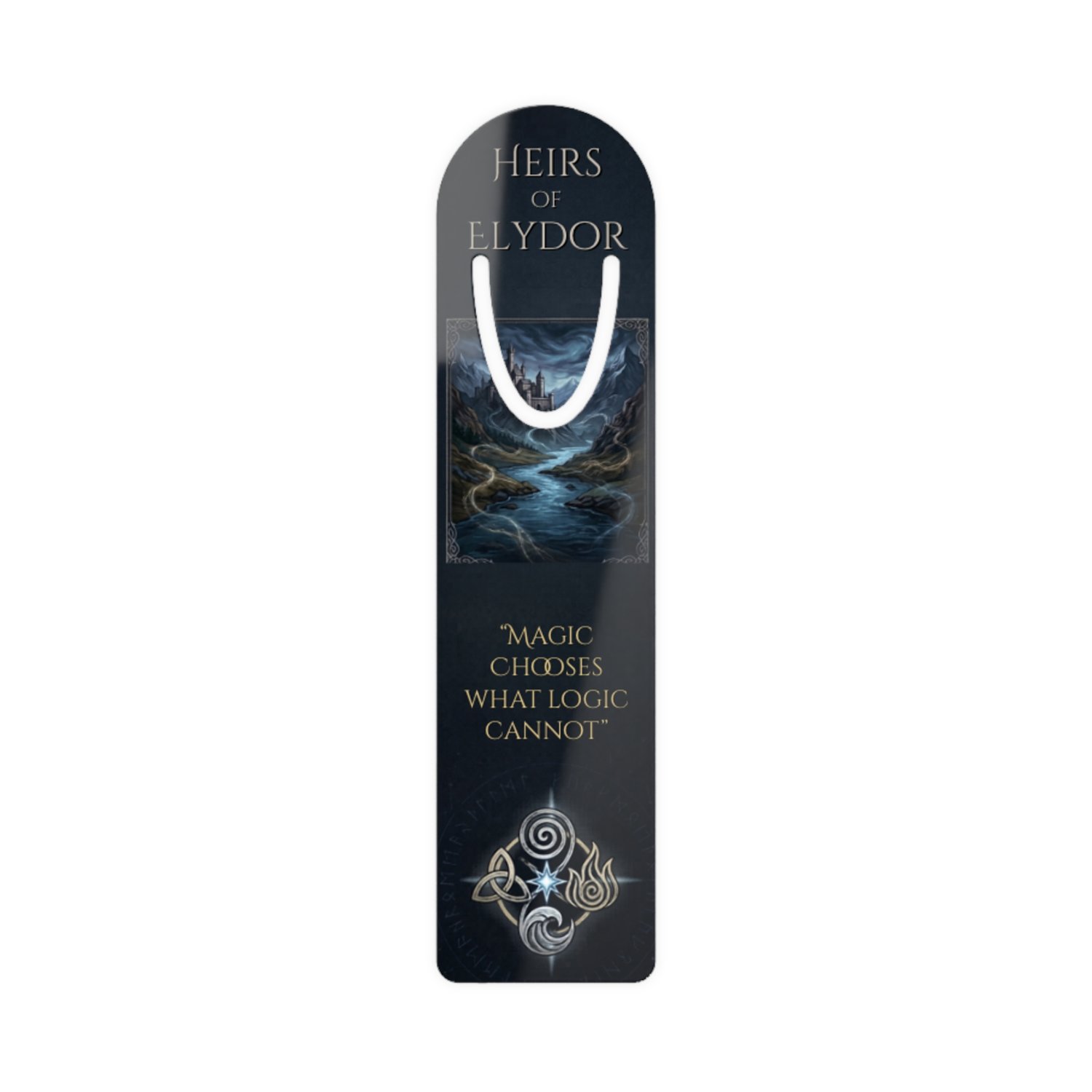 Pulled directly from the pages of the Heirs of Elydor series, this quote lives on a slim aluminum bookmark built to travel with you through every world you visit ... fantasy novels, late-night reading sessions, book club nights, and everywhere in between. To a stranger, it's a sleek, modern bookmark. To us, it's a reminder that some things can't be explained, only felt.
