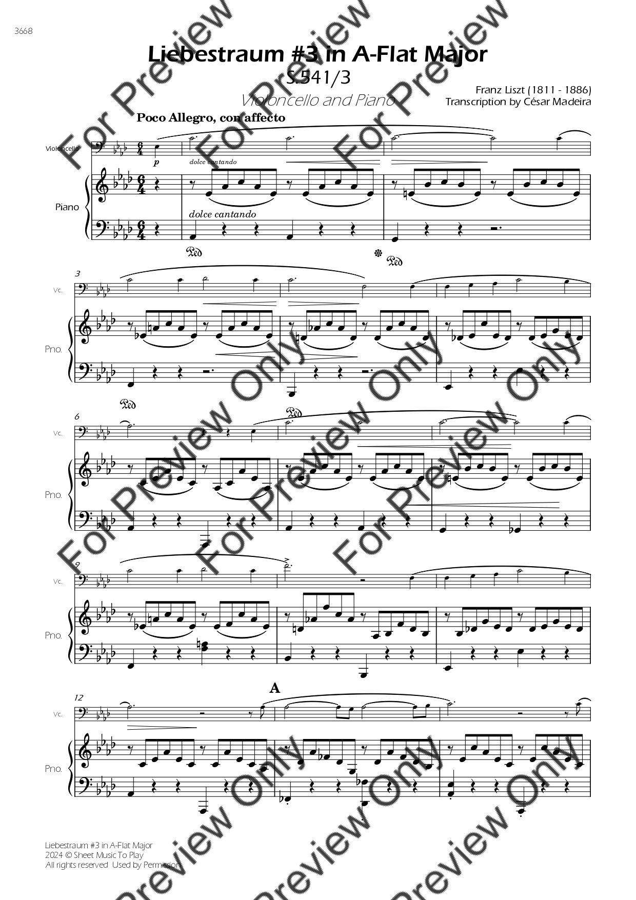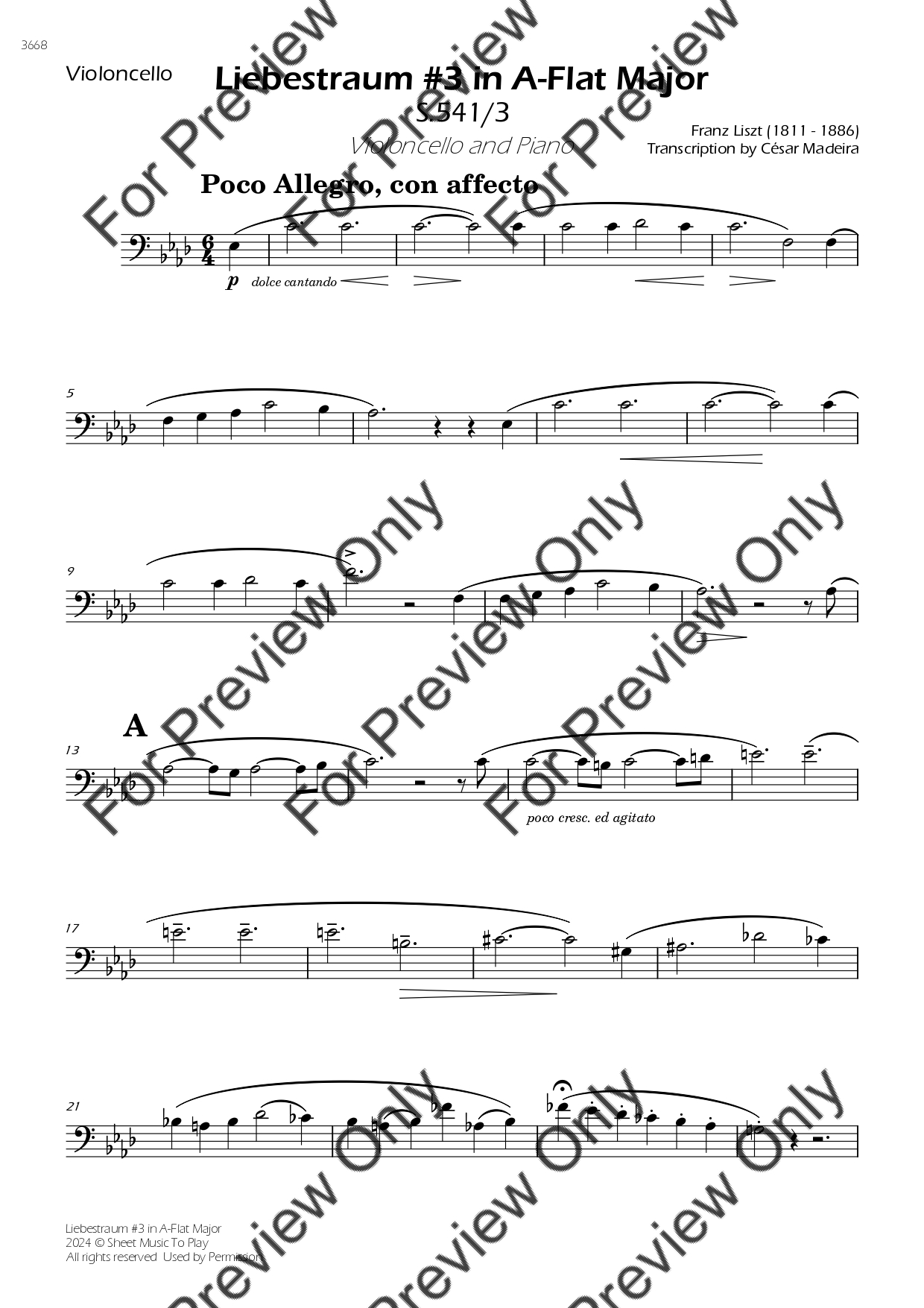 Liebestraum No.3 by Franz Liszt. Arrangement for Violoncello and Piano. With Full Score and Individual Parts. Have fun!