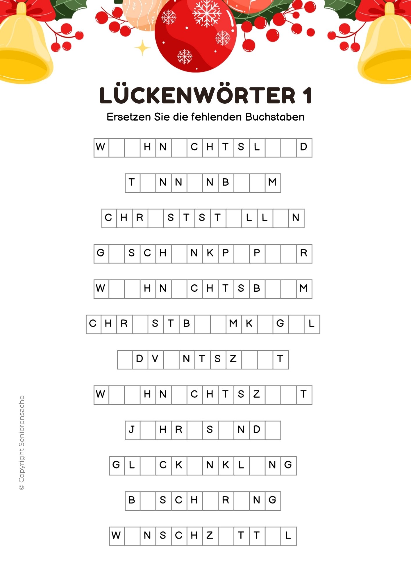 Weihnachtsrätsel für Senioren zum Ausdrucken