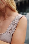 Darling Dress is worked in one piece, top-down. It starts with two straps, then the front neckline and arm lines are shaped. After that, the back is started and the body is worked in one piece to the hem. At the end, the stitches are picked up from the edges and finished using Picot Bind Off method. Instructions for the straps are represented with a chart. The pattern includes instructions on how to modify the length of the dress and adjust the width of the body. In such case, you will need accordingly more or less yardage.should be. It will match both shorts and skirts or dresses!