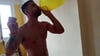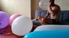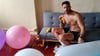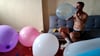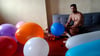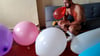 After that he blow and let deflate 3 small balloons and he blow and pin pop 3 other small balloons.