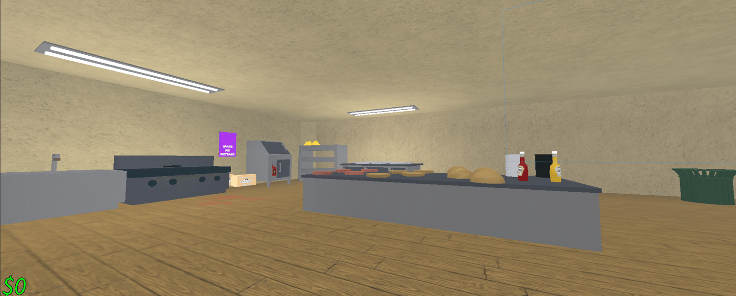 Scripted burger cooking simulator. Cook burgers for customers and make cash doing it.