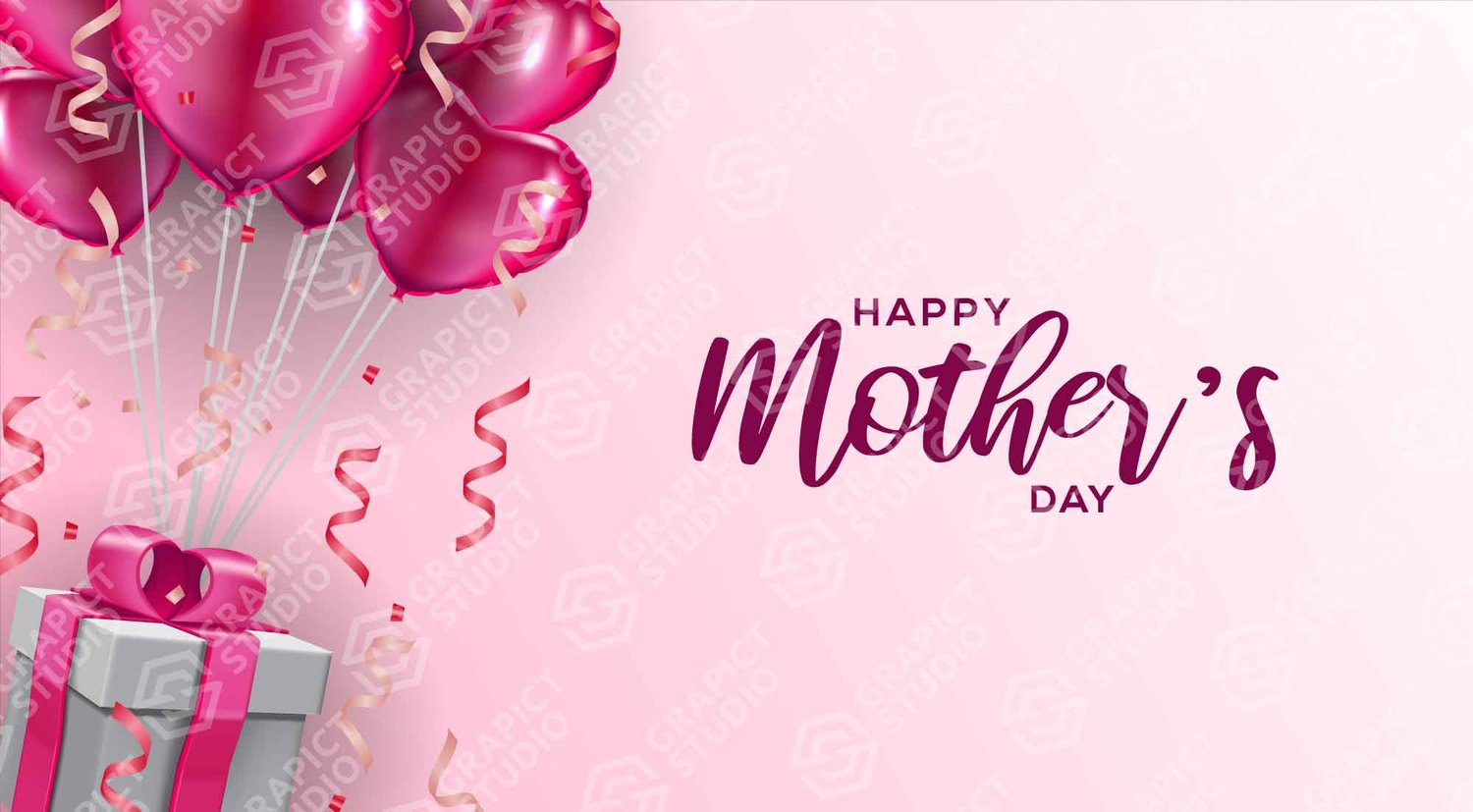 Gift box flown by balloons, Mother's Day celebration greeting card. 3D Balloon related to Mother's Day background or banner