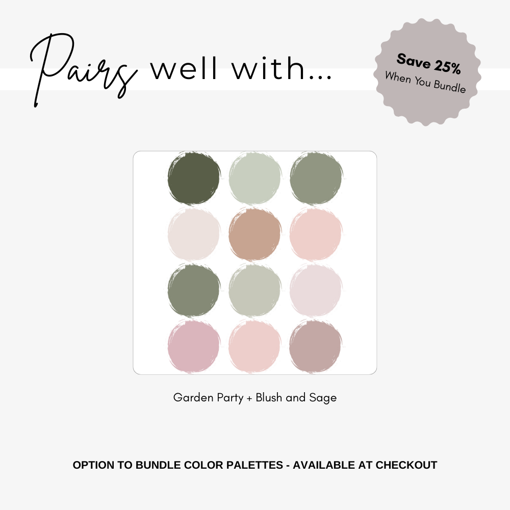 Elevate your creative projects with our Blush & Sage Color Palette, tailored for small businesses seeking a natural, earthy aesthetic. This versatile collection of dark and light sage green, blush pink, dusty rose, soft peach, and rose taupe, includes precise Hex Codes, RGB, and CMYK values, perfect for branding, logos, social media, marketing materials, and website color schemes. Compatible with Procreate and Canva, our palette simplifies the design process, ensuring cohesive and visually appealing results. Embrace the tranquility of soft blush and serene sage to enhance your brand’s identity and captivate your audience with these thoughtfully curated hues.