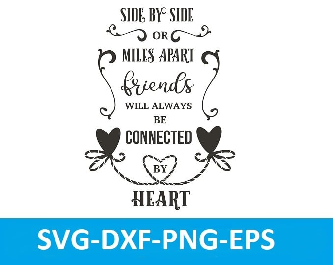 237 Side by side or miles apart friends will always be connected by heart svg png eps dxf