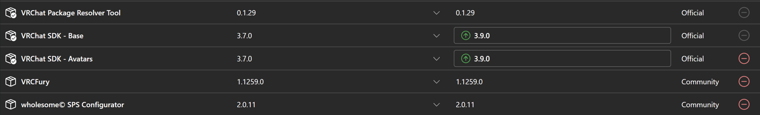 - Press on the "+" to at wholesome© SPS Configurator to add it to your project. The package versions are in the picture below (Make sure the project looks like this).