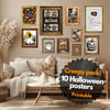 A set of 10 creepy Halloween printable wall art decoration, invitation card and wallpaper phones.