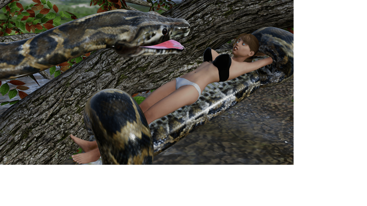 Lost in the hot jungle, Emily strips down to her underwear, unaware of the large, hungry predator who is following her every move.