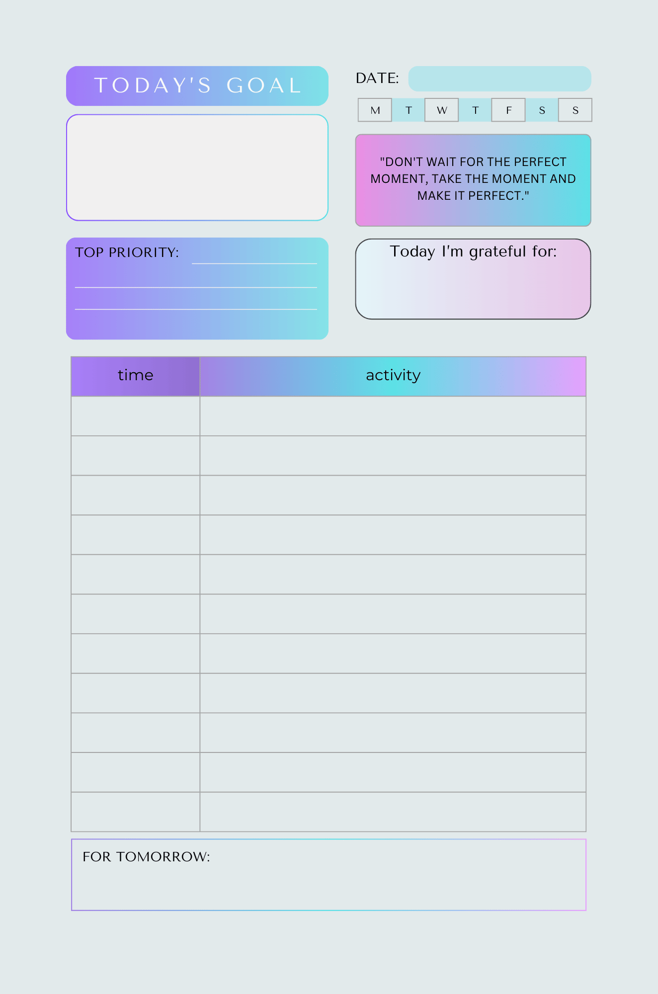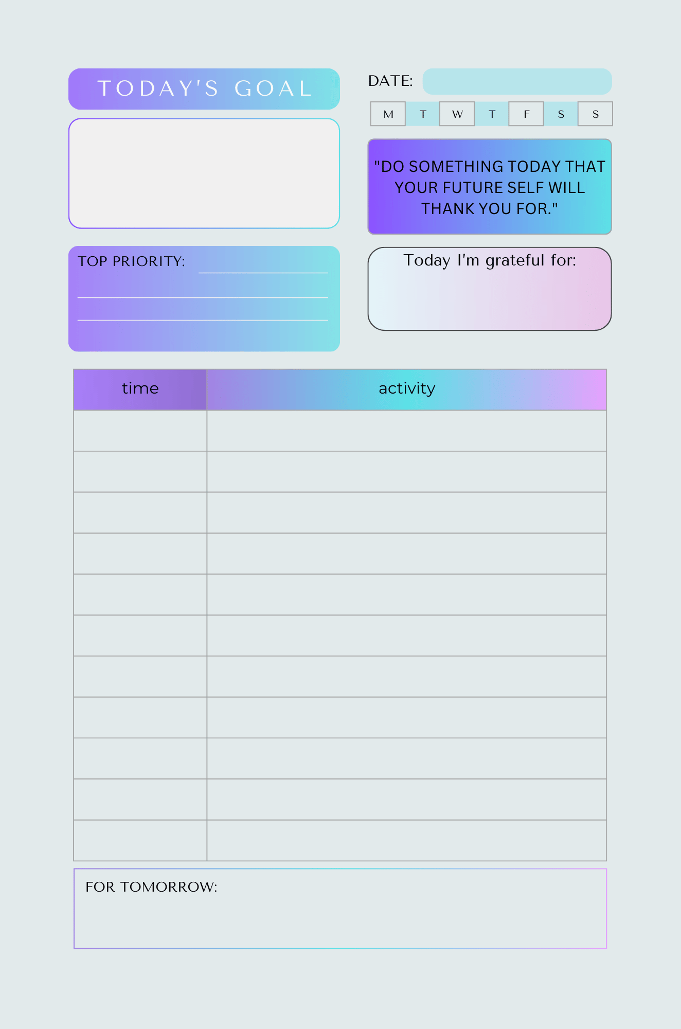 ✅ Daily Productivity Pages – Set today’s goal, write your top priority, and close the day with gratitude.