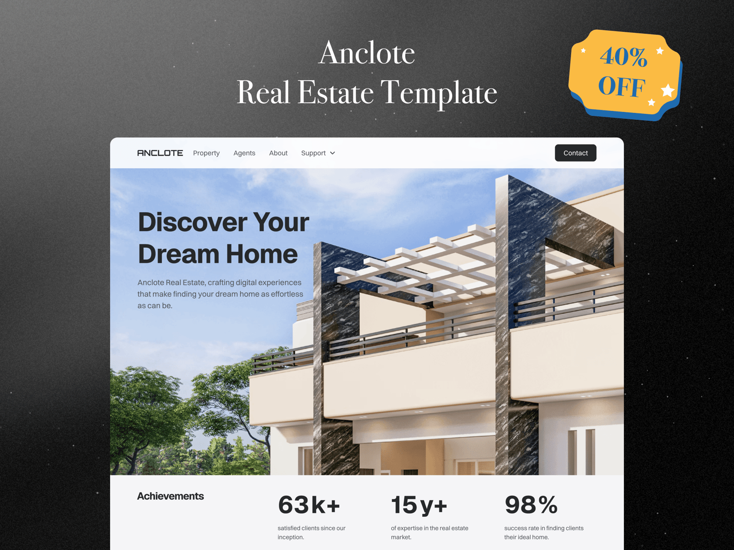 The template's seamless animations and 100% customizable design elements allow you to create a brand experience that's truly your own. Anclote was built using the best standards for easy editability on Framer, you will be surprised at how easily you can tailor it to reflect your brand's identity, ensuring your online presence is as unique as the properties you list.