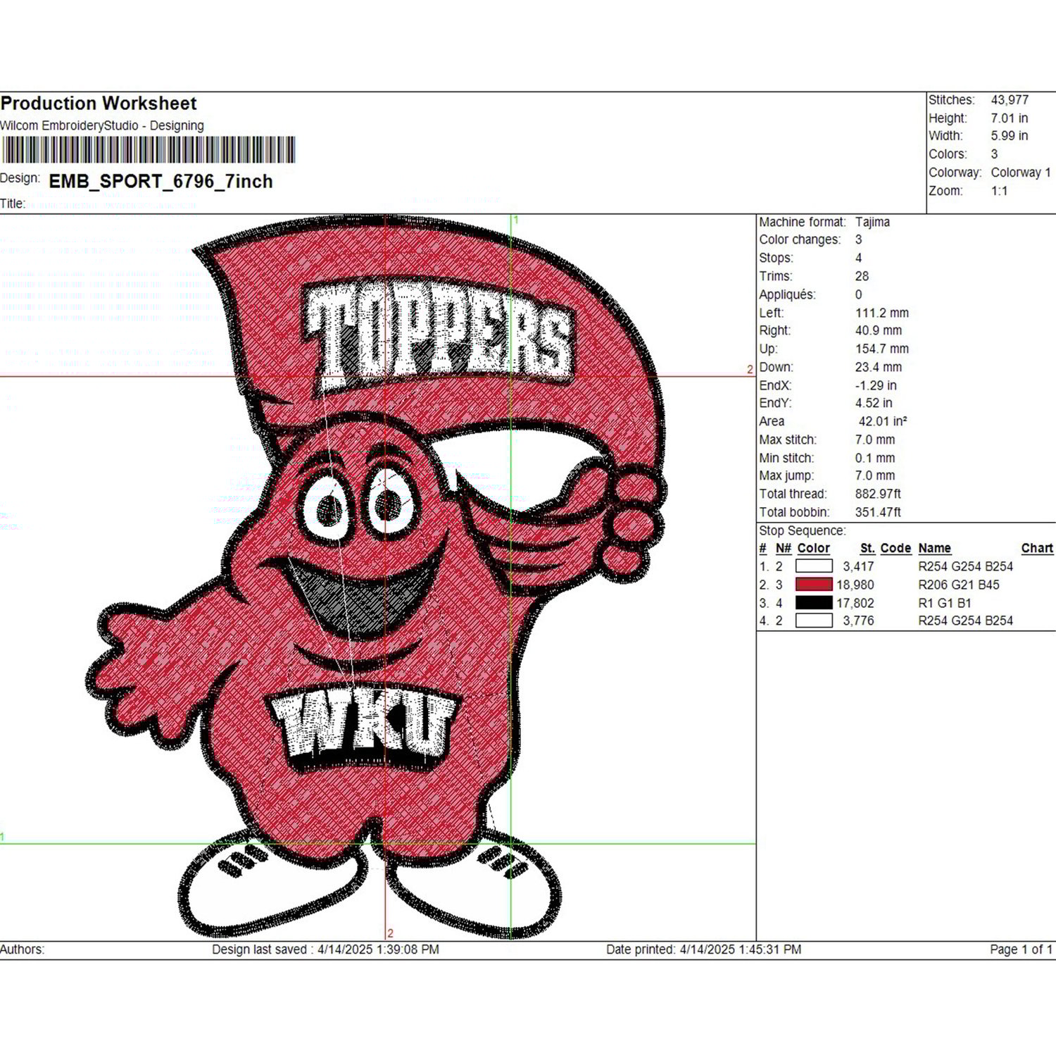 #NCAA #WesternKentucky #Hilltoppers #MachineEmbroidery #EmbroideryDesigns #CollegeSports #WKU #EmbroideryArt #SportsEmbroidery #CustomEmbroidery #TeamSpirit #HilltopperPride #EmbroideryPatterns #DIYEmbroidery #CollegeMerchandise #WKUEmbroidery #FanGear #SewingCommunity #Crafting #EmbroideryLove