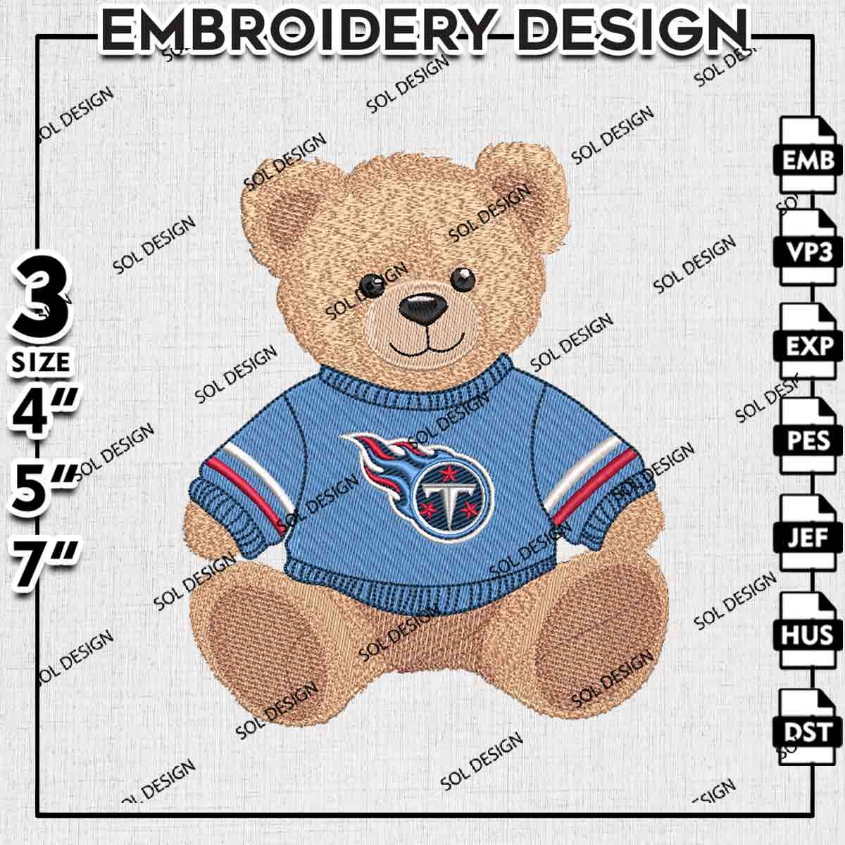 Tennessee Titans Team Teddy Bear Logo Embroidery Designs, NFL Tennessee Titans Embroidery Files, NFL Titans Logo Embroidery, National Football League Machine Embroidery Design, Cute Teddy Bear Sport Designs, Digital Do