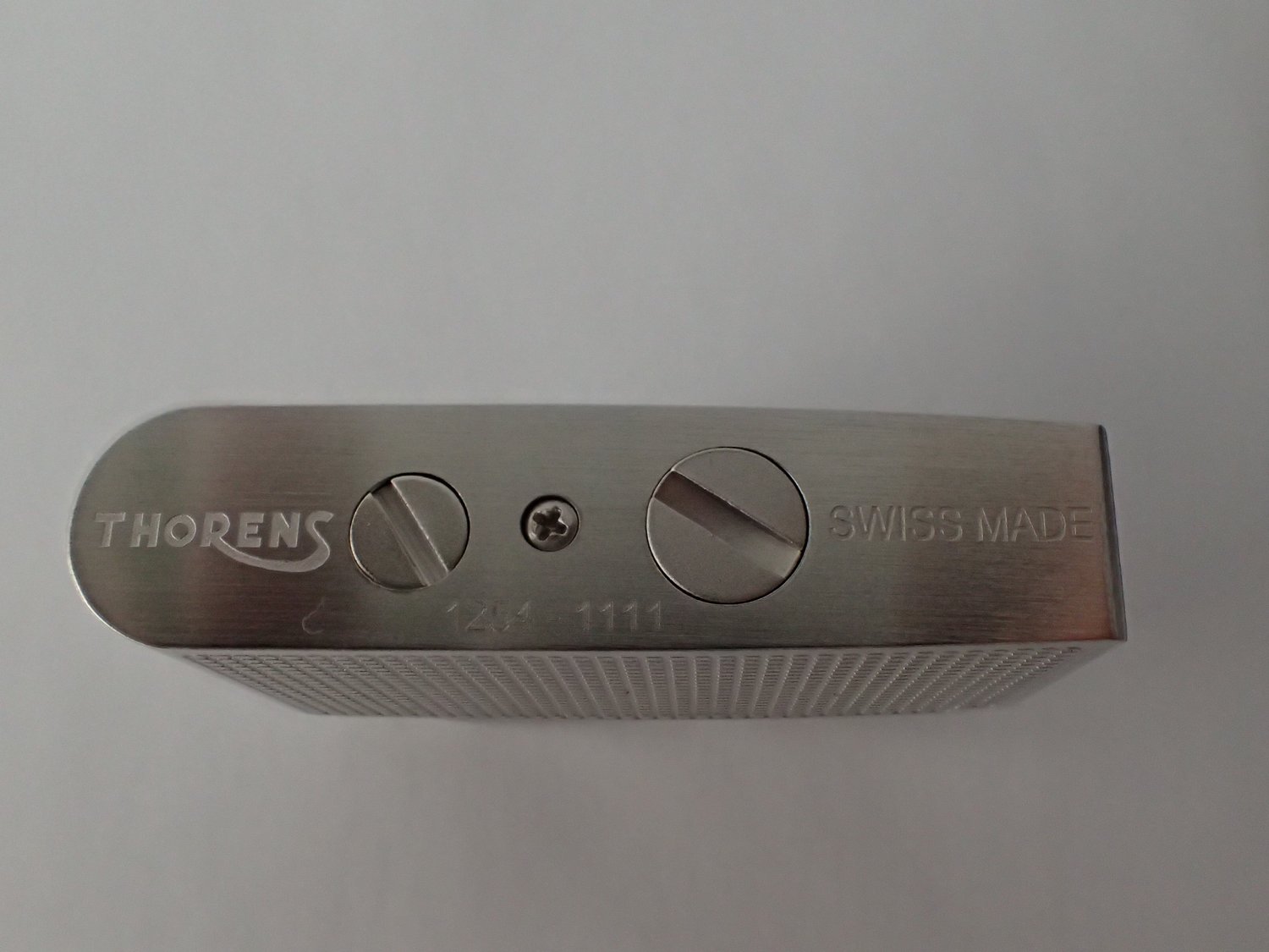 - Marking of the Thorens logo, Swiss Made and series number including the coding of the production date with laser engraving.