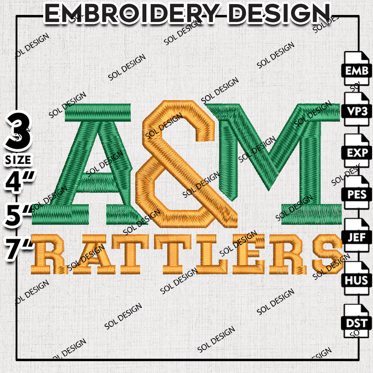 A&M Rattlers College Football Team Logo Embroidery Designs, NCAA Florida A&M Rattlers Machine Embroidery Files, NCAA Logo embroidery designs, NCAA Rattlers Logo, Digital Download