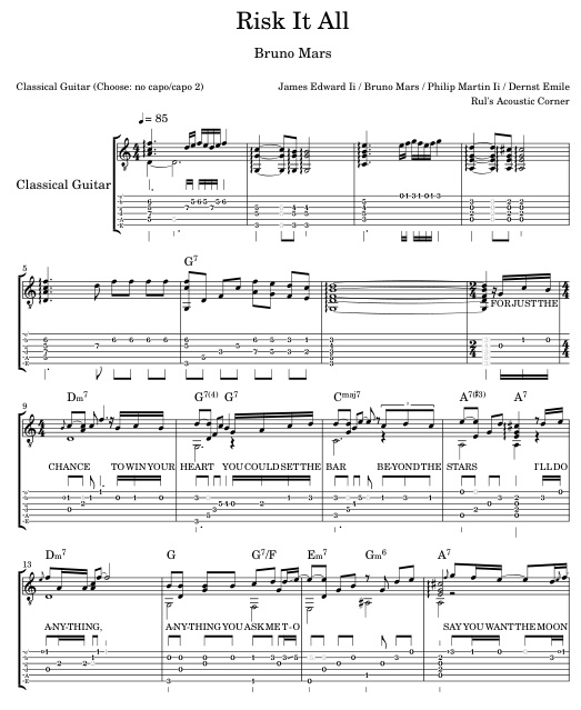 Sampel Wolfgang Amadeus Mozart Piano Sonata K 545 Classical Solo Guitar Tabs Sheet Pdf