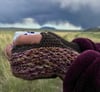 Sample shown: I used up some remnants, as I wanted a dual color effect. 40g of Six and Seven Fiber “Wheat”(100% merino) 220yds; (202m)/100g in “The Burrow”; 40g of Cloudborn fibers “Highland Worsted” (100% wool) 220yds; (202m)/100g in “Espresso Heather”