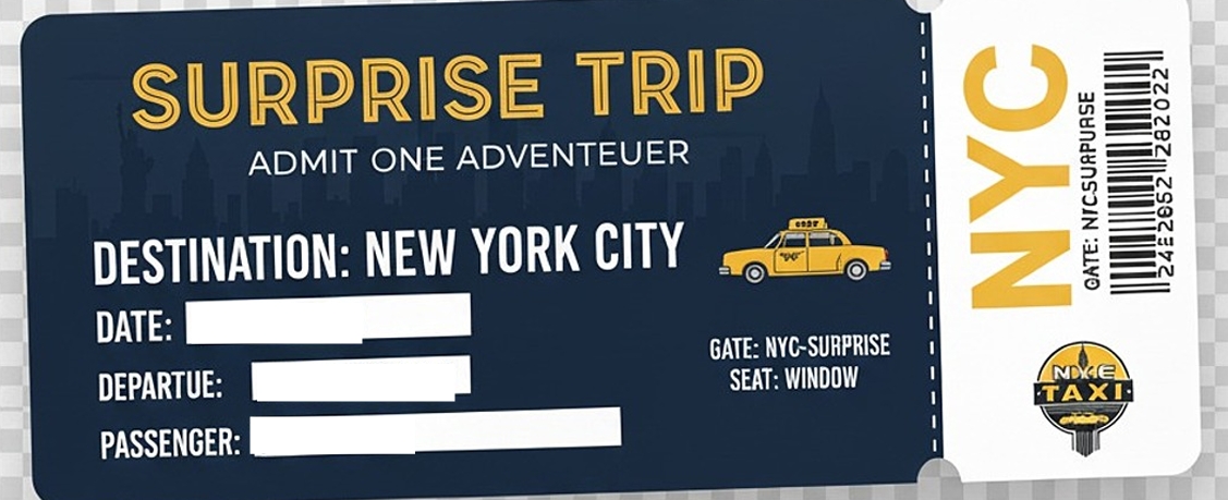 Give the ultimate surprise with this Editable New York Trip Ticket!