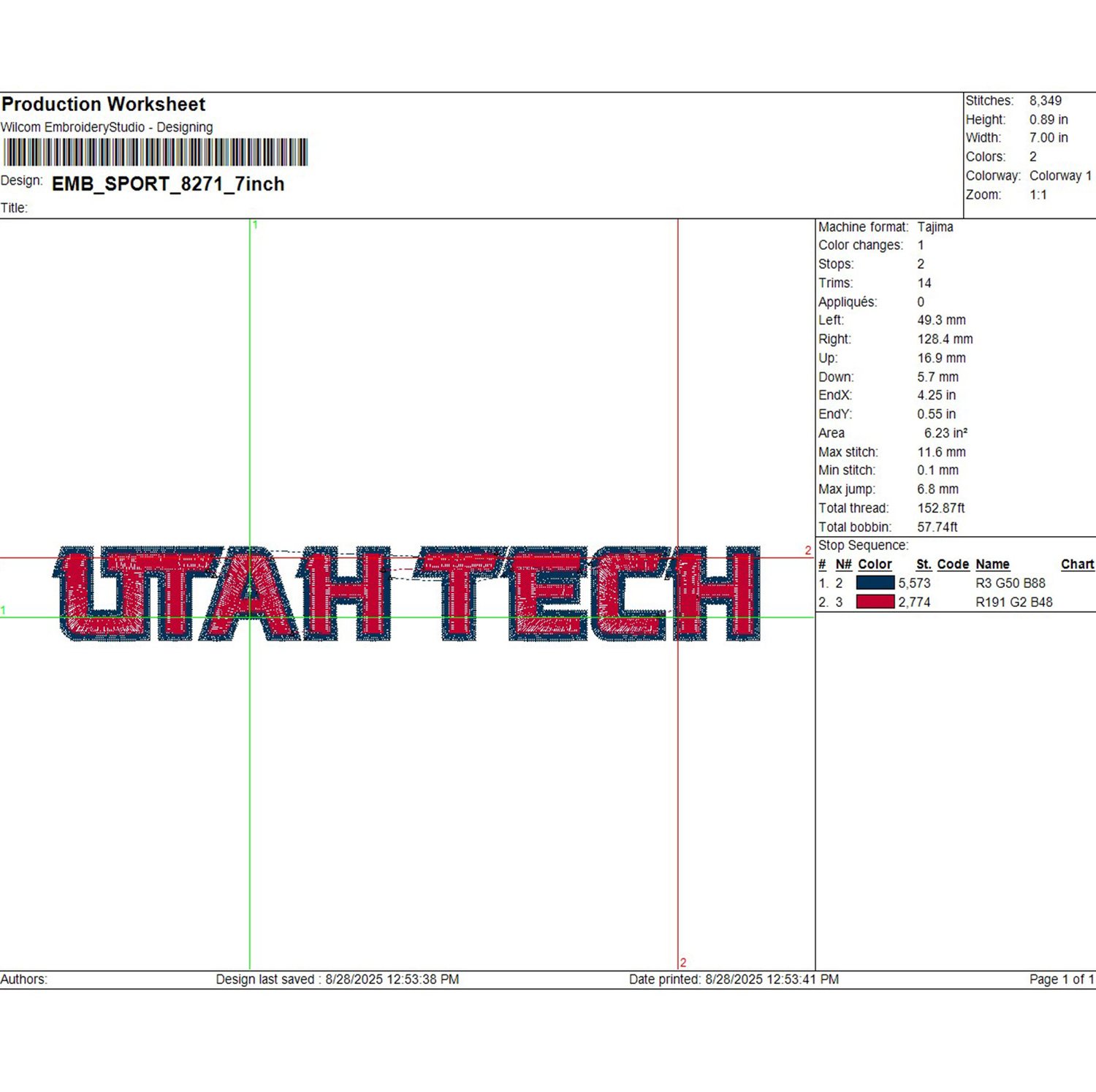 NCAA Utah Tech College Football Team Wordmark Logo Embroidery Designs, Ncaa Embroidery Files, Utah Tech Trailblazers NCAA Team Logo Embroidery, Game Day Machine Embroidery Design, Digital Download