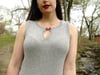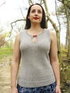 Amazonite Tank is a fitted sleeveless top with flattering waist shaping a choice of five different neckline options to make the perfect tank for your wardrobe — or make a few so you can switch up your look whenever you like! This tank is knit in pieces from the bottom up so you won’t need to decide on your neckline until you’re at the front armholes! Seed stitch trims at armhole and neckline are picked up and knit after seaming, tying elegantly back to the deep, textured hem.