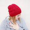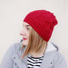 Rojo is a pretty, textured hat with a slouchy look. The hat is knitted seamlessly in the round from bottom up.
