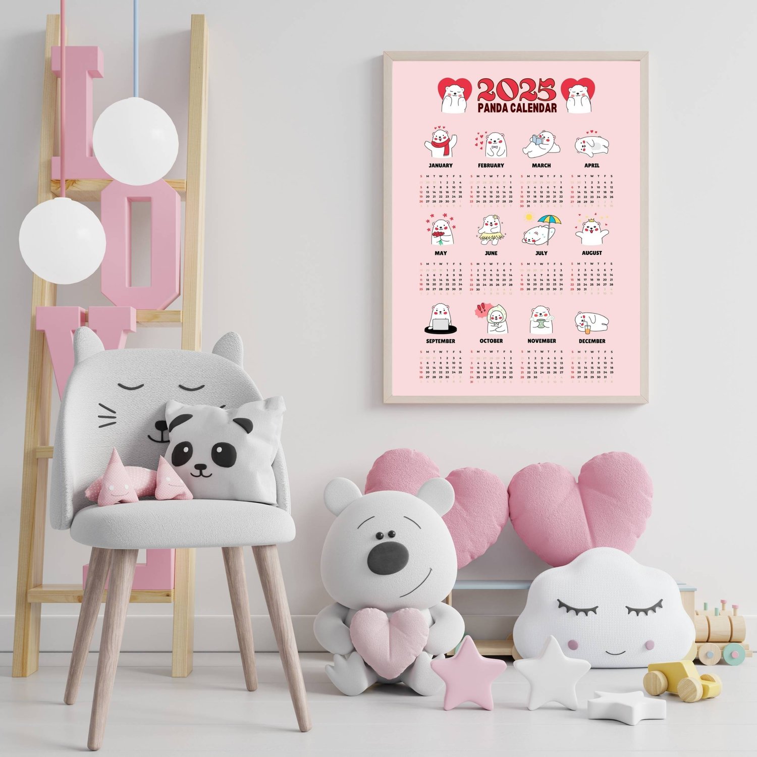 Panda Calendar 2025, Digital Calendar, Yearly Calendar 2025, Digital download