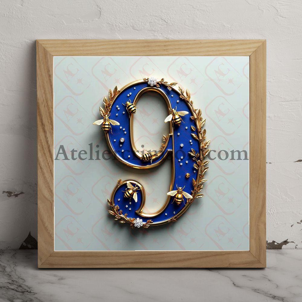 Number 9 royal blue bees Download Now this high quality AI-generated image, perfect for adding a touch of tranquility and creativity to any space.