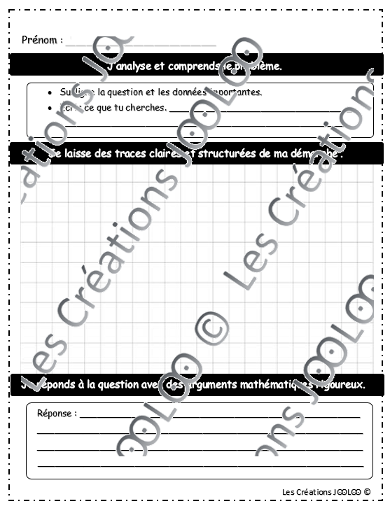 - 1 feuille pour aider l'élève à organiser ses calculs et écrire sa réponse