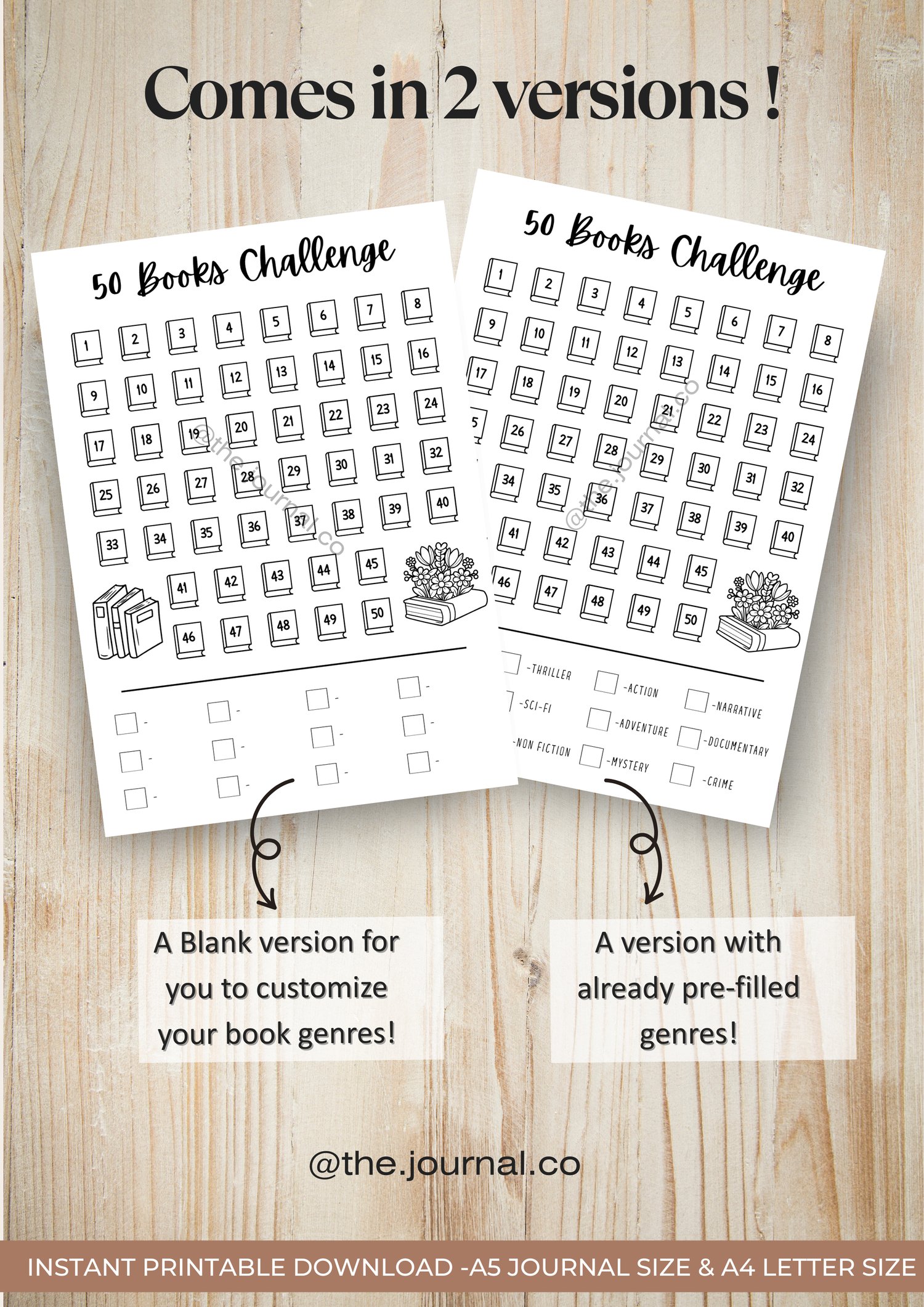 50 Books Reading Challenge - A4 Letter Size & A5 Journal Size