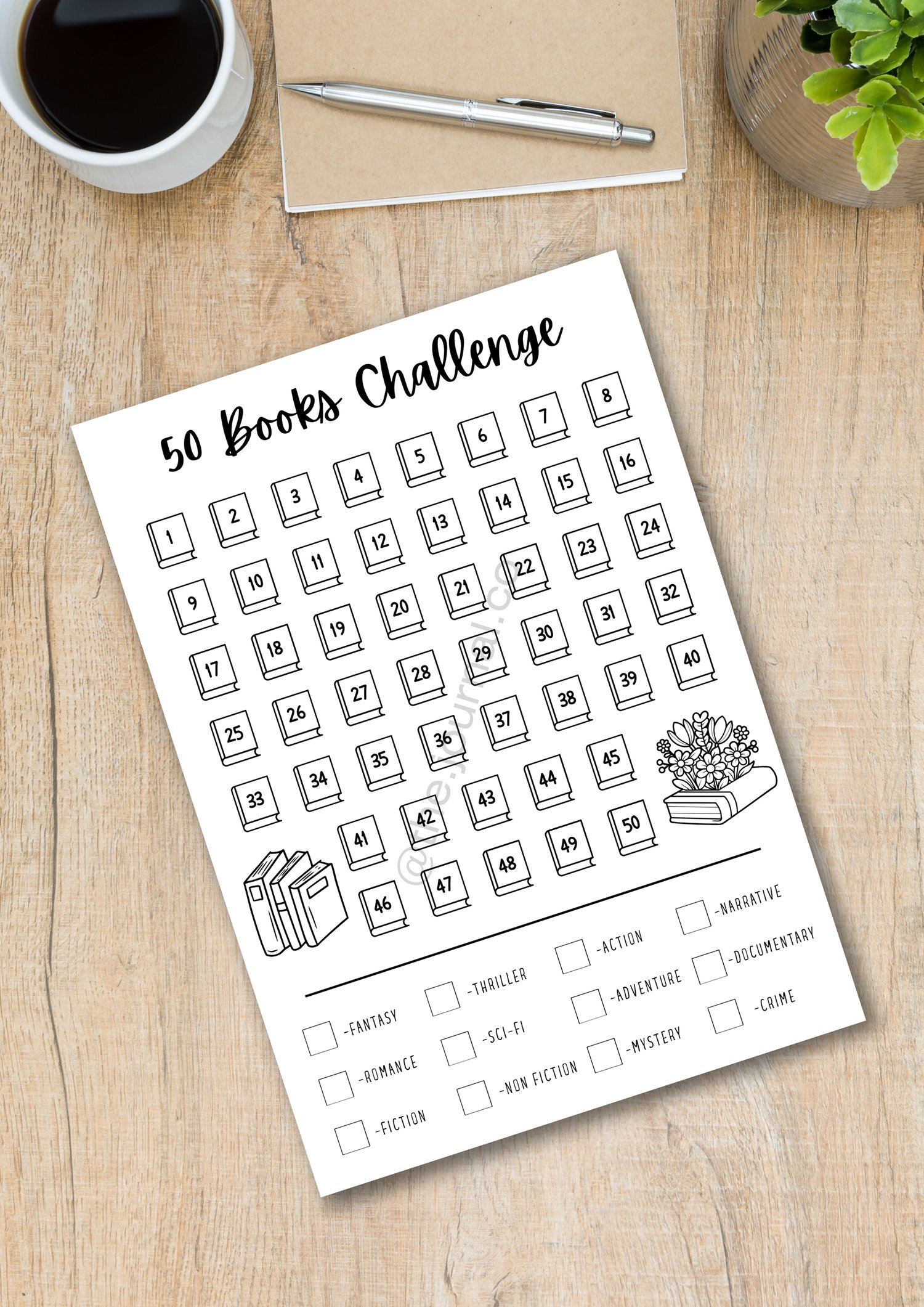 - 1 PDF: 50 Books Challenge Tracker (Pre-filled and Blank A4 size)