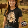Designed with care and attention to detail, this horse illustration is ideal for creating t-shirts, sweatshirts, hoodies, and more. She has a warm, elegant western feel that prints beautifully on dark or light fabrics.