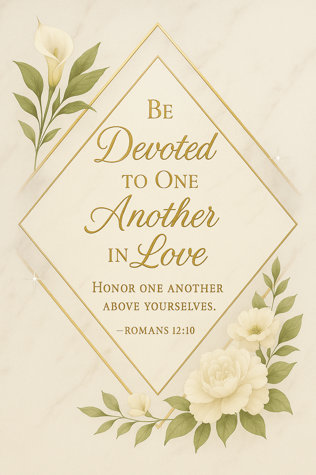 💎🌿 Christian Devotion & Honor Wall Art – Romans 12:10 Diamond Floral Poster – Faith-Based Printable for Wedding, Ministry & Encouragement – Be Devoted in Love Theme