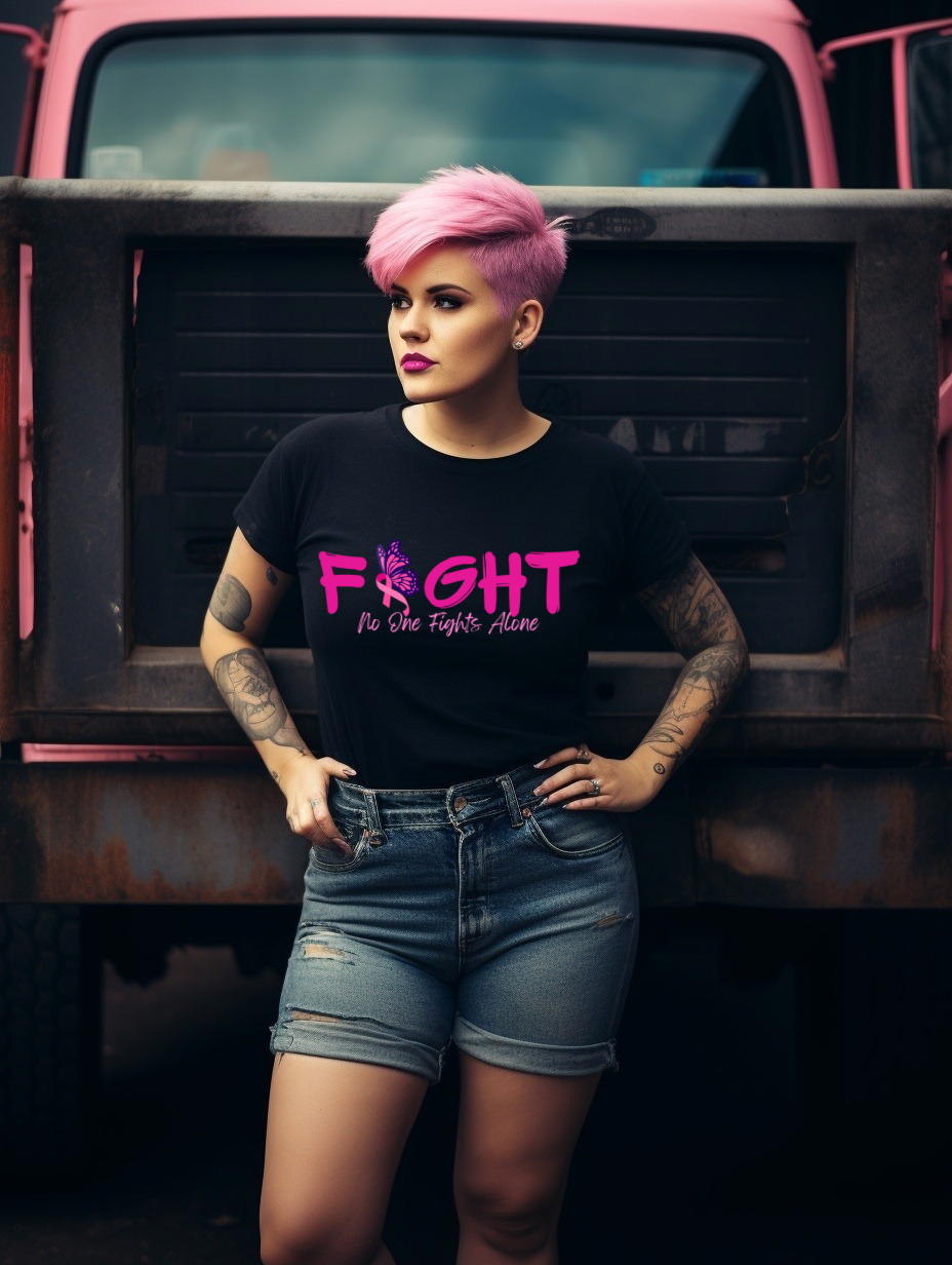Spread love, hope, and unity with this Fight – No One Fights Alone breast cancer awareness digital design. Featuring bold, pink 3D-style lettering with a butterfly ribbon centerpiece, this design is perfect for honoring survivors, supporting fighters, and showing solidarity during Breast Cancer Awareness Month.
