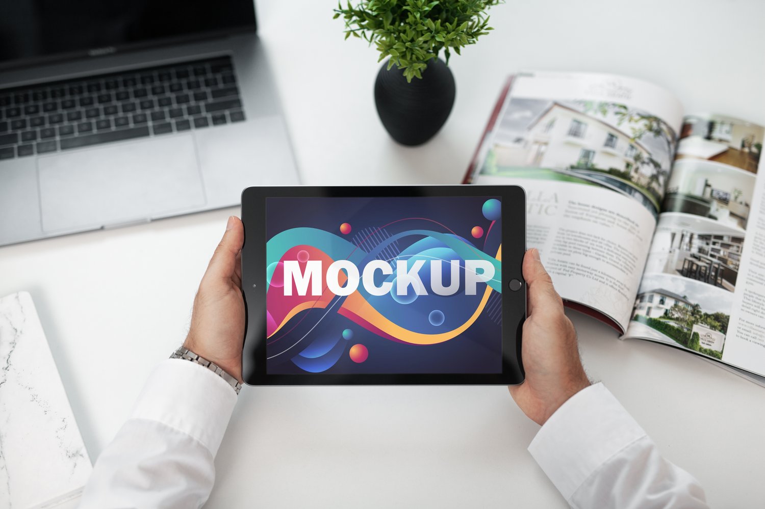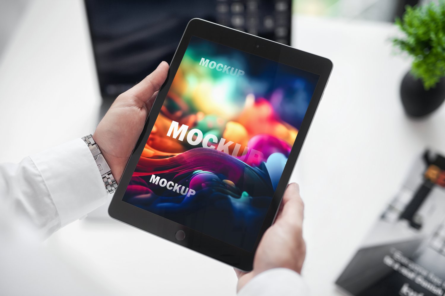 Apple device mockups bundle for application use, web design that contains multiple scenes in different angles. Devices with customizable colours, shadows and smart objects. You can use it for social media posts like Instagram to spice up your portfolio on your website, or for Behance and Dribbble projects. Also can be used for printing due to high resolution.