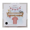 Printed with a cute watercolour football T-shirt and accessories. The message 'happy Birthday' is displayed across the top. This card is certain to make any football fan smile.