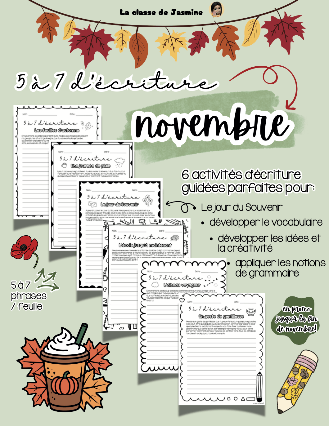Ce document comprend 6 activités d’écriture guidées parfaites pour le mois de novembre!
