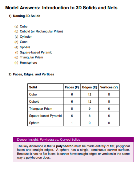 IGCSE Extended Level Maths: Introduction to 3D Solids and Nets (Worksheet & Model Answers)