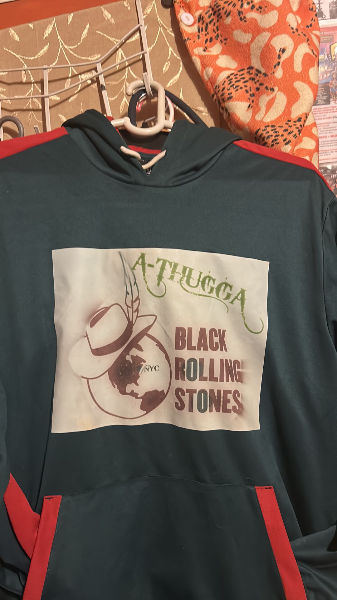 Black Rolling Stones Hoodie π₯ Color: Green with Red Stripes | Size: Large This isnβt just a hoodie β this is upscale. Luxury. Designer-level drip. The Delta edition from Black Rolling Stones brings that next-level vibe, sleek and bold, perfect for staying fly anywhere you go. π₯ Price: $30 β on sale now! Donβt sleep on this.