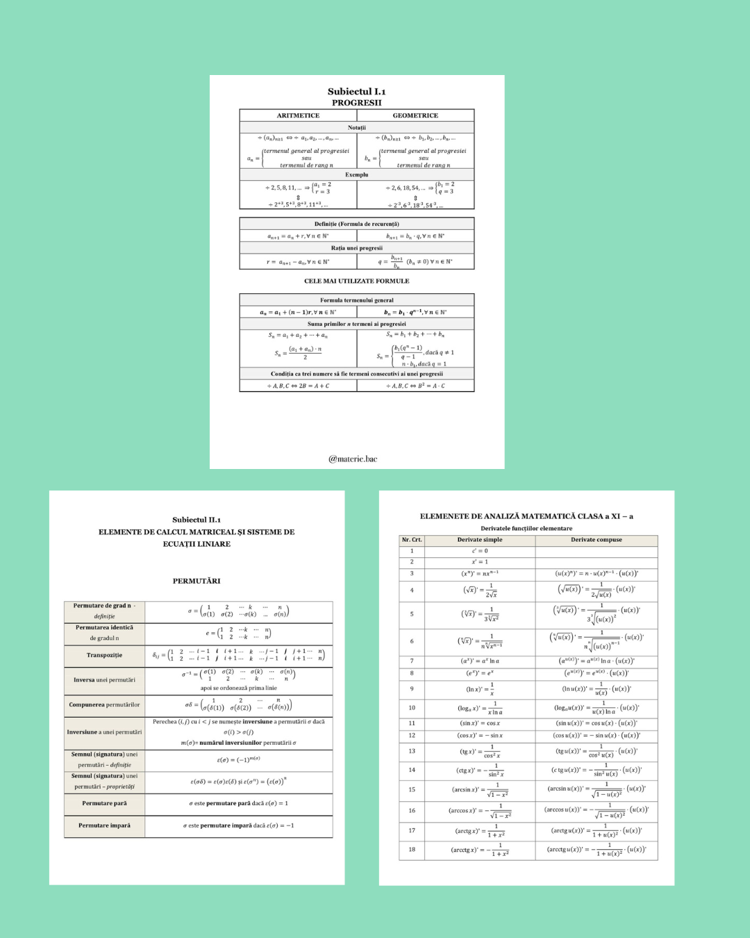 Acest ghid conține toate formulele esențiale de care ai nevoie pentru liceu: algebră, trigonometrie, analiză matematică, probabilități și multe altele! Ideal pentru recapitulare rapidă, teste, teze și BAC, acest material îți oferă explicații clare și structurate.