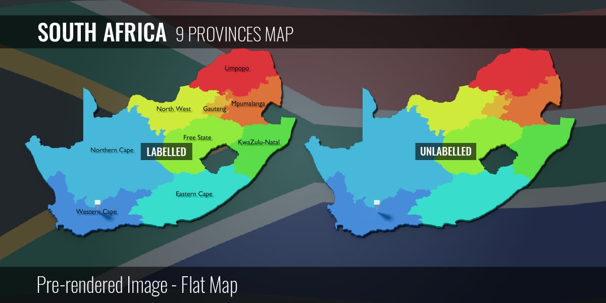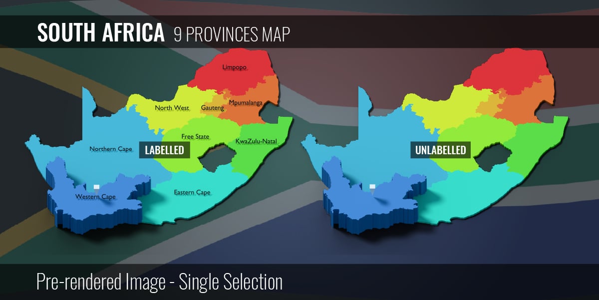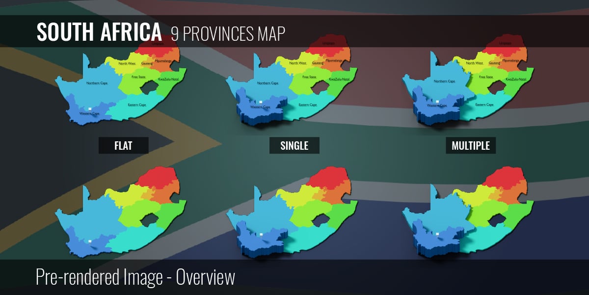 South Africa - 9 Provinces Map (3D + Pre-rendered Images)