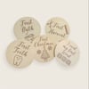 Wooden milestone circles from one month through one year. Reverse side has baby's "firsts" to celebrate. Use as props for milestone photos.