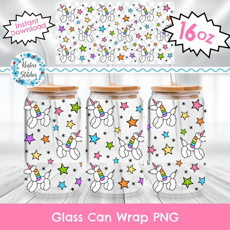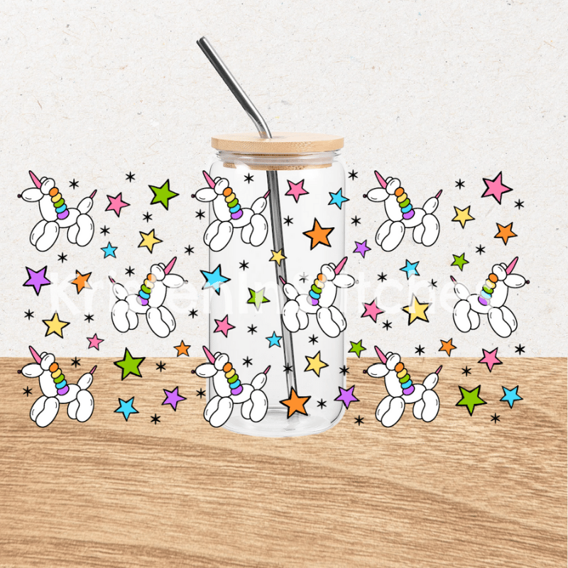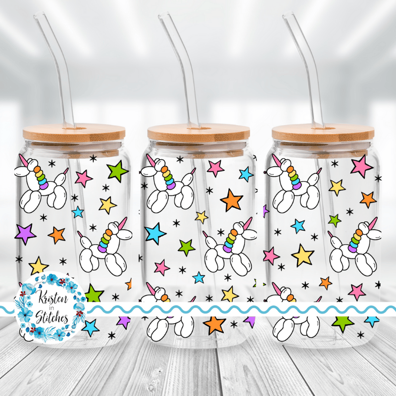 Unicorn Balloon Animal Glass Can Wrap Transparent Cup PNG, Party Pup Dog, White Horse