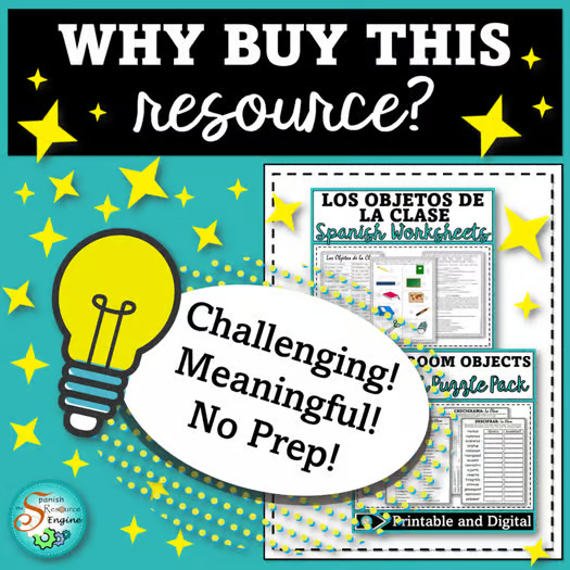 Save time and money with this comprehensive Spanish Classroom Objects bundle! Students will master the spelling and meaning of 36 common classroom objects in Spanish through engaging digital and printable activities.