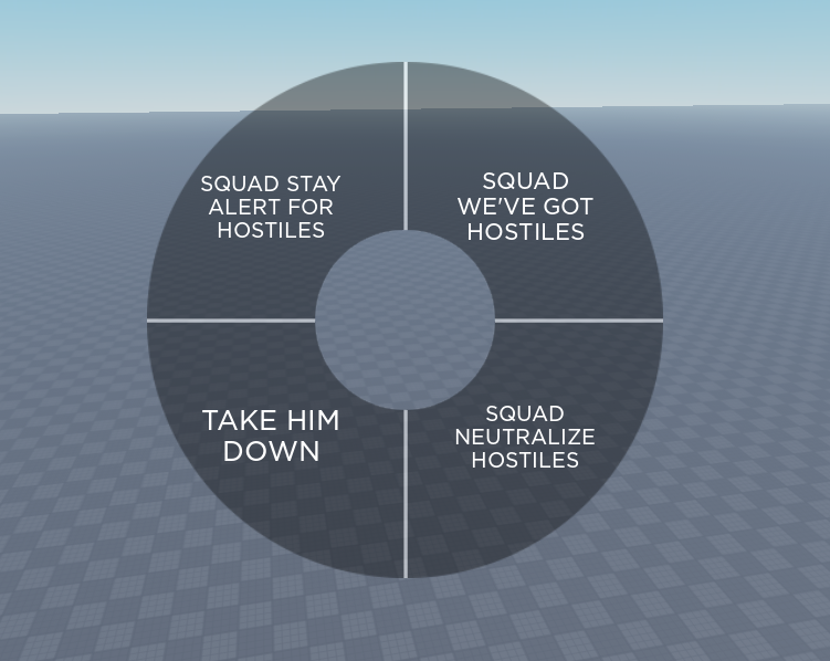 A fully customizable UI callout wheel which plays audio and outputs a chat bubble via. your in-game character when selected.