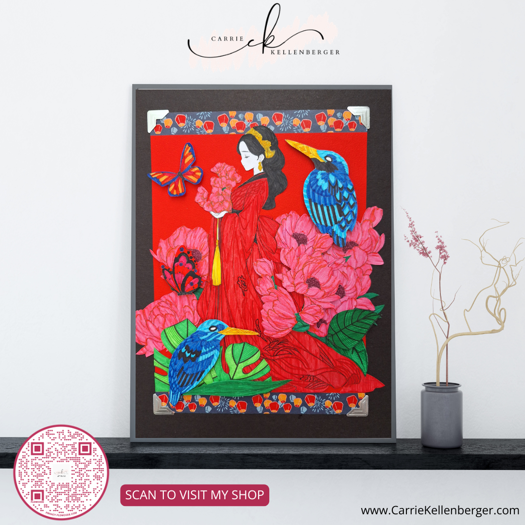 My paper cutting technique adds an extra 3D dimension of beauty and intricacy to each design, making my collages a delightful keepsake.They’re meant to brighten any space: an office cubby, a senior’s bedside, a child’s room, a sunny kitchen, or anywhere your heart desires.