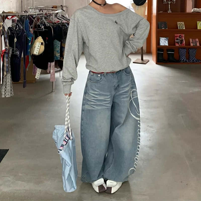 Inspired by early 2000s silhouettes, these jeans create a laid-back yet expressive look, while the light denim keeps everything soft and easy to style.