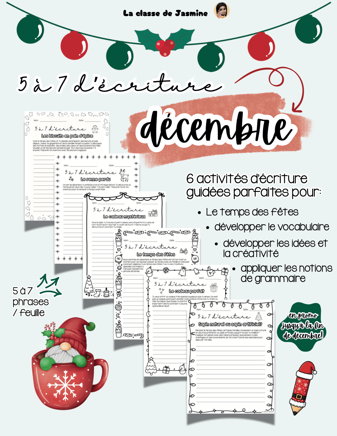 Ce document comprend 6 activités d’écriture guidées parfaites pour le mois de décembre!