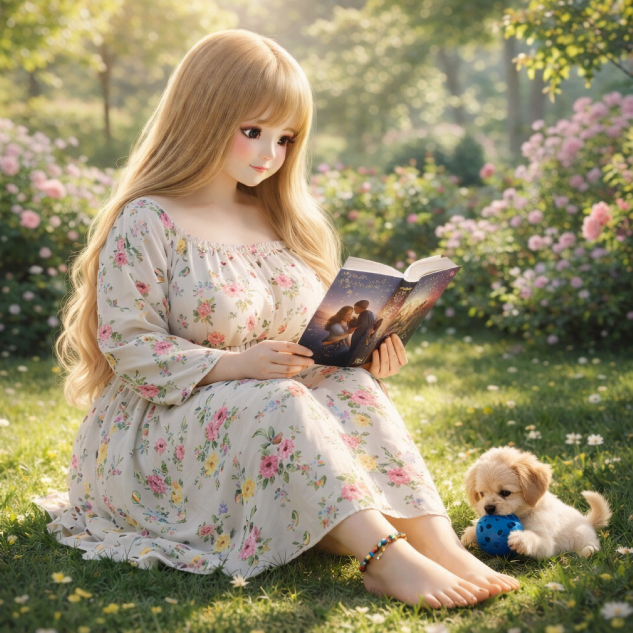 Peaceful garden reading and playtime.