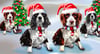 Cute Cavalier King Charles Spaniels x 2 with Christmas hat and scarf. With and without Christmas tree; 4 PNG files.