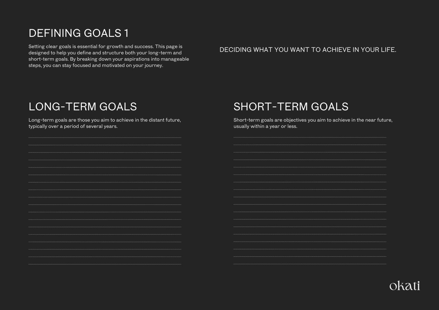 - Goal Setting Pages: Define your long-term and short-term goals.
